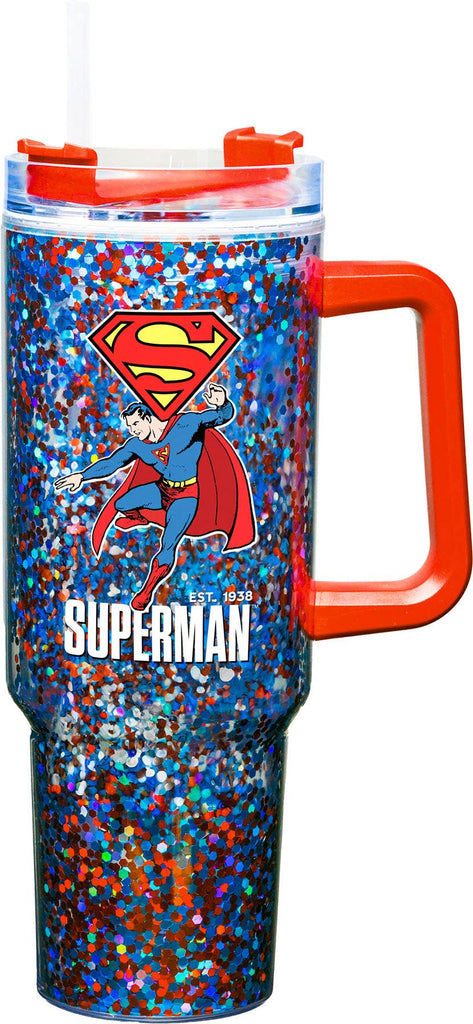 These 40oz acrylic cups are double walled acrylic, include a travel lid and straw, and are filled with colorful glitter for additional sparkle!