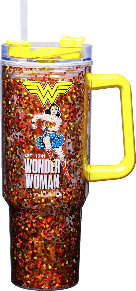 These 40oz acrylic cups are double walled acrylic, include a travel lid and straw, and are filled with colorful glitter for additional sparkle!
